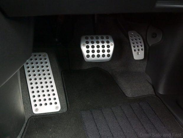 I’m not the biggest fan of buttons for gear selection, but they’re not bad here. There are visual improvements dotted throughout, such as the metal finished pedals and the leather soft touch points with real contrast stitching.
