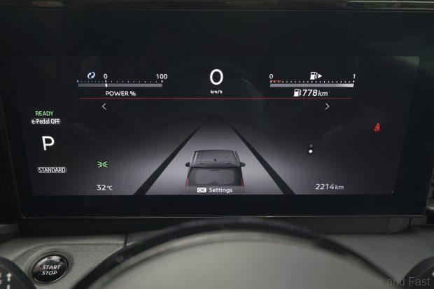 I’m not the biggest fan of buttons for gear selection, but they’re not bad here. There are visual improvements dotted throughout, such as the metal finished pedals and the leather soft touch points with real contrast stitching.