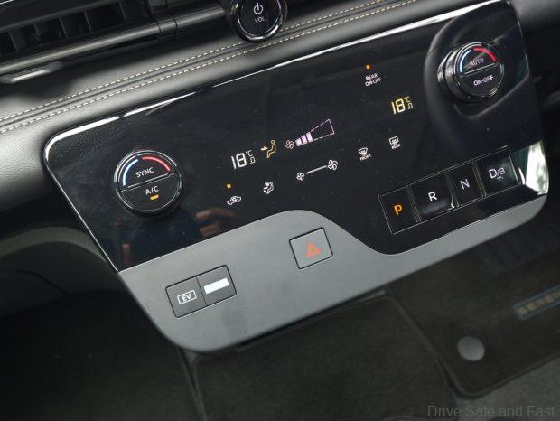 There are physical buttons throughout for many vehicle functions such as the e-pedal (single pedal driving), drive mode, EV mode (forces the engine to stay off for slightly extended periods, autohold, EPB, the hazard lights and more.