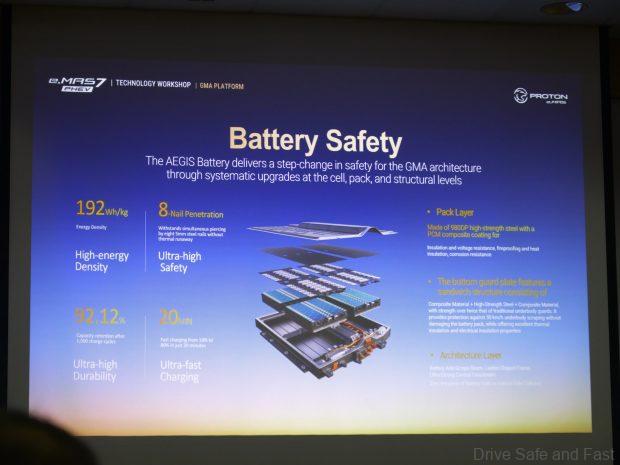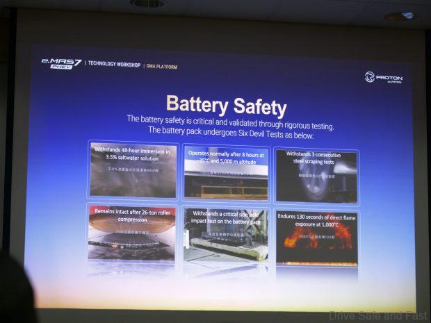 For many buyers, battery safety is a top priority. The GMA platform introduces the AEGIS Battery System made by Geely, which has undergone what Proton calls the “Six Devil Tests.” These include 48-hour saltwater immersion, exposure to 1,000°C direct flames for 130 seconds, and even a 26-ton roller compression test. Proton was not keen on making durability claims on behalf of CATL, who supply the lower tier battery for the base model e.MAS 7 PHEV.