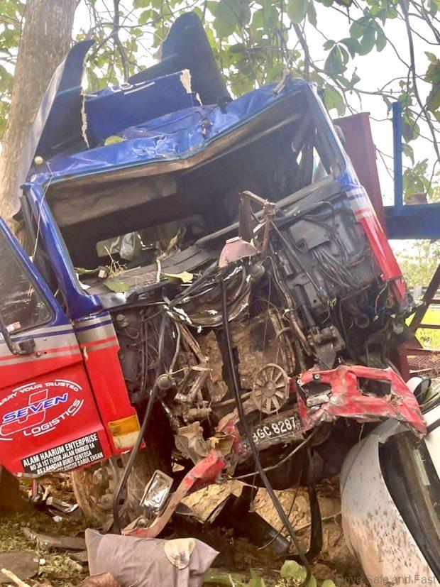 Looking at the damage to the truck we wonder if the truck driver and his assistant is ok or not as the damage looks severe and majority of these trucks have no AIRBAGS and their overall condition might not be the best.