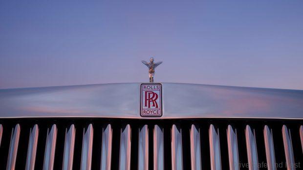 The grille itself is a bold interpretation of one of the most recognisable icons in luxury. Its generous surround – almost a metre in width – appears to be carved from a solid block of stainless steel, with 24 vanes set deeply within it. The Spirit of Ecstasy figurine is integrated on top of the grille in a subtly recessed section, its lines flowing backwards and dissolving into the bonnet, as though the figurine is moving at speed through water, and the metalwork is parting gently around her.