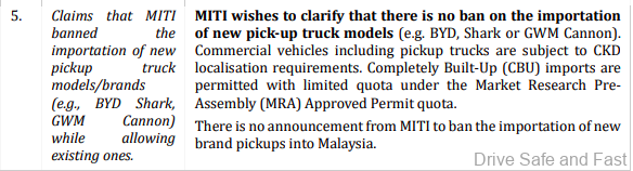 Why we are sharing and asking this question? Well, previous rumours in the market said that brand new pickup truck nameplates will not be allowed for sale in Malaysia to keep the current segment from being shrunk. This information has NOW been clarified by MITI in an official document (see below).