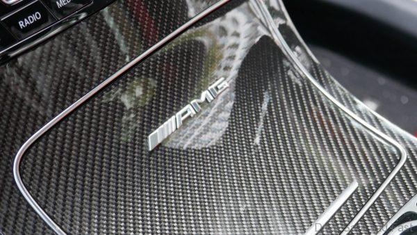 Inside, it’s the typical AMG interior. Black leather dominates the cabin, but there’s a fair bit of perforated red leather on the seats, red stitching, carbon fibre inlays, and aluminium fittings.