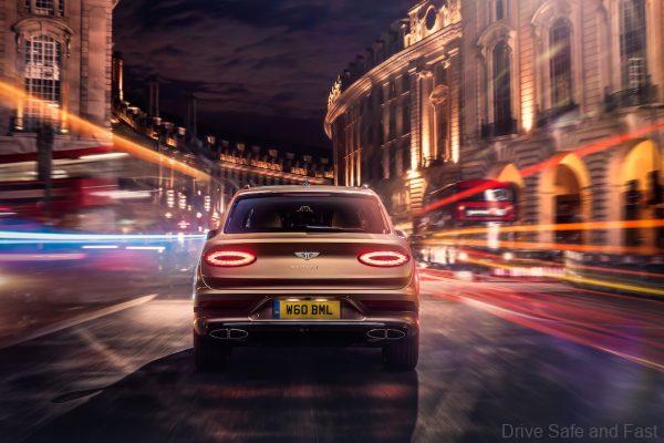 The lights feature within an all-new, full-width tailgate, resulting in a cleaner, more contemporary look. The licence plate has moved down into the bumper, allowing for prominent Bentley lettering above.