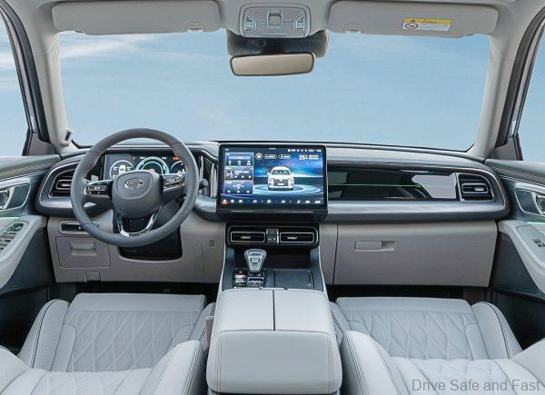 As with many modern Chinese flagship SUVs, technology is the name of the game inside. There’s a 14.6″ touch-enabled infotainment system, a 12.3″ digital instrument cluster, an Augmented Reality HUD system, and GAC Intelligent Pilot – a suite that includes adaptive cruise control, traffic sign recognition system, forward and rear collision warning, lane departure warning, lane keep assist, lane change assist, automatic emergency braking, automatic parking, and more.