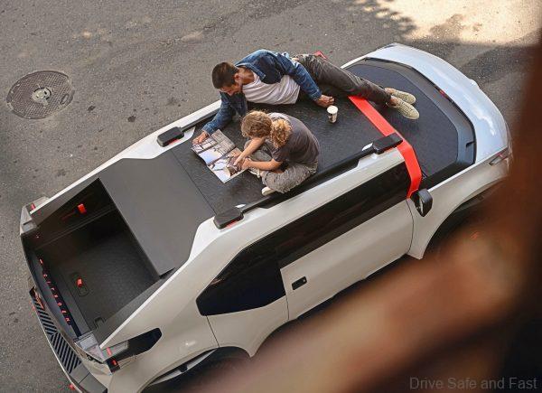 All this cuts the weight of the panels by 50% versus their steel equivalents while being strong enough to hold up an adult’s weight. Roof rails can be mounted for bike racks or roof boxes. Charging cables are and more go into the frunk. Part of oli’s charm is its versatility. The vehicle features a little pick up bed at the rear yet has room for 4 occupants.