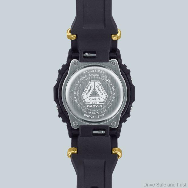• The BGD-S565ZE is based on the iconic BGD-565 model from the BABY-G line, which is known for its compact, shock-resistant design tailored for women. This anniversary model is the first BABY-G to incorporate bio-based resin and Tough Solar charging, making it both eco-friendly and efficient. Gold IP-treated band rings engraved with “50th ANNIVERSARY” complete the design, adding an elegant touch to this functional watch.