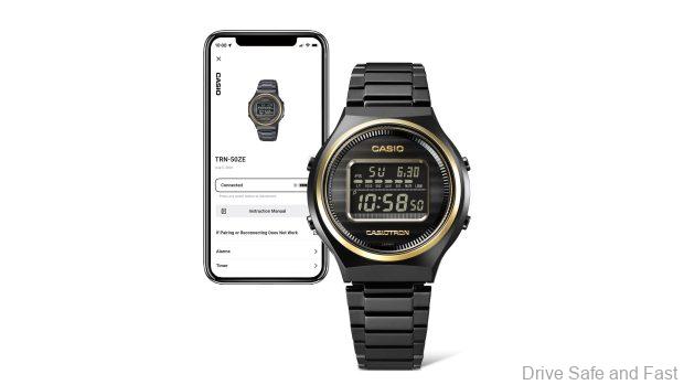 • This tribute model reimagines the design of Casio’s original CASIOTRON QW02. It combines classic aesthetics with modern technology, incorporating standard time radio wave reception, Mobile Link connectivity, and solar charging. A striking gold-colored link engraved with “50th ANNIVERSARY” stands out on the black band, symbolizing Casio’s golden jubilee.