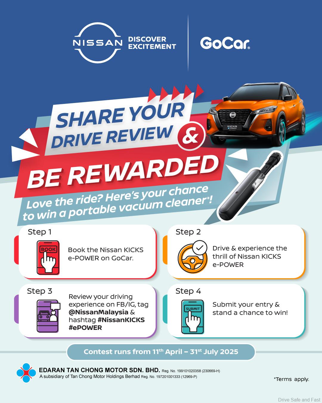On top of that, from now until 31 July 2025, you can win a portable vacuum cleaner by sharing their driving experience with the Nissan KICKS e-POWER. Here’s how, simply book the Nissan KICKS e-POWER via the GoCar app, enjoy the drive, post your experience on Instagram or Facebook, tag @NissanMalaysia, and include the hashtags #NissanKICKS and #ePOWER.