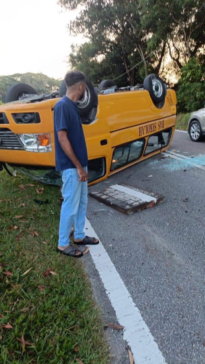 A school van carrying several students overturned early this morning after it struck an uncovered pothole along Jalan Abdul Samad in Johor Bahru. The incident occurred during the morning rush hour, just as students were on their way to school. So how quickly was the van driver going for the van to overturn? Apparently not fast at all.
