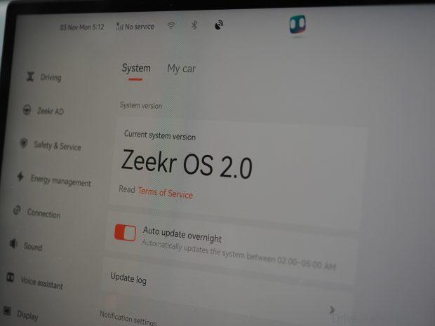 As expected, the system can be updated over the air. Our unit came with Zeekr OS 2.0.