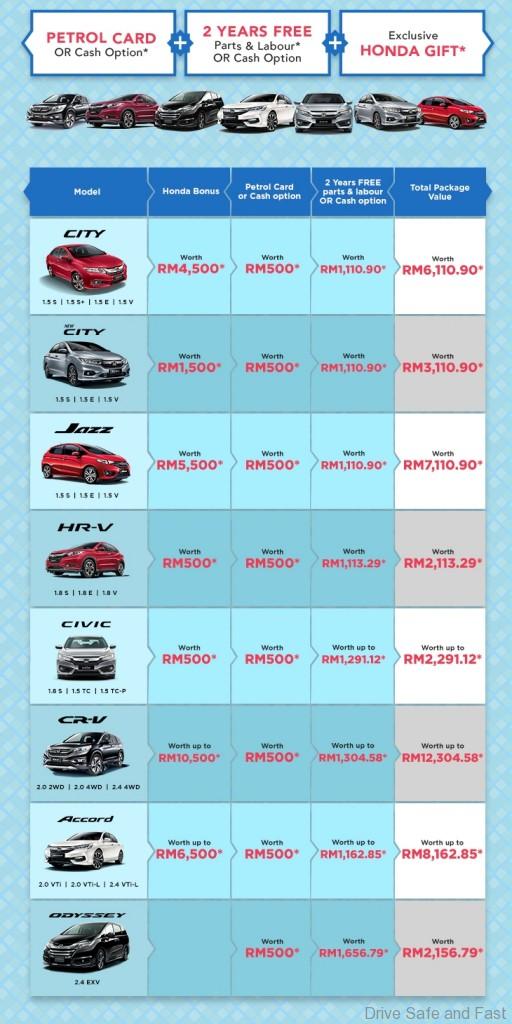 Apart from the new pricing announcement, Honda has planned two exciting campaigns in the month of May for customers. The first campaign will be a month-long festive campaign, ‘Nikmati Musim Bonus’ which begins on 1 May 2017 and runs up to 31 May 2017. Honda customers will enjoy two years of free service (parts and labour) or cash option of up to RM12,000.