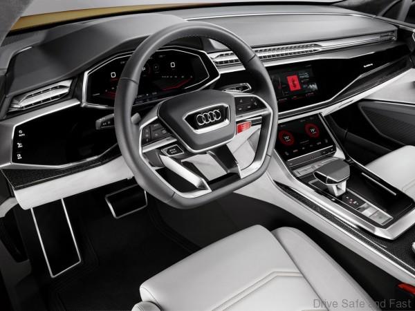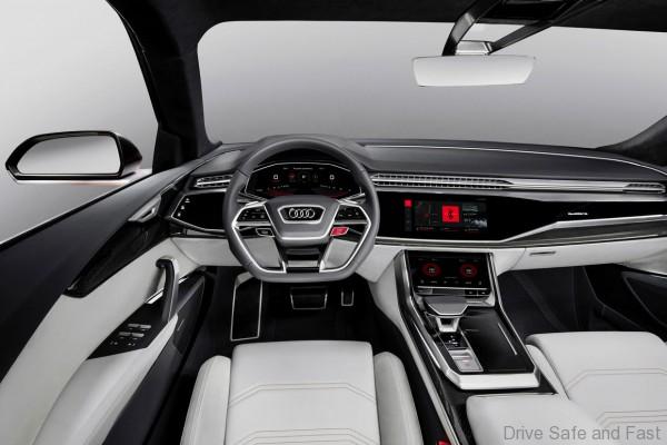 The Audi Q8 sport concept technology platform, which Audi is presenting at Google I/O, already has Android on board. The new functions, including the streaming service Spotify, Google Play Music and Google Assistant all run on the large MMI touch display in the centre of the dashboard. The information is also visible in the Audi virtual cockpit in the driver’s direct field of view. This marks the first time the new services have been fully integrated into Audi’s brand specific infotainment system. While the navigation map continues to use the Audi-typical HERE database, the driver can also choose to navigate with Google Maps. A message centre for incoming messages and calls round out the new services in the show car.