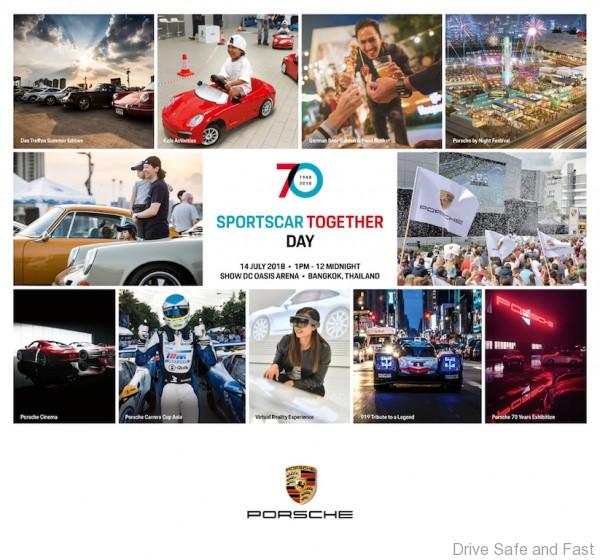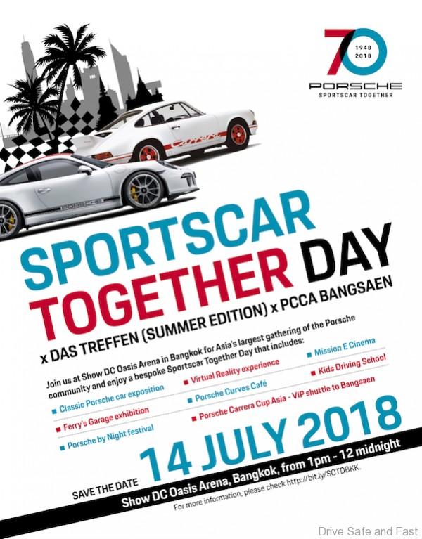 In celebration of 70 years of Porsche sports cars, the carmaker invites members of the public to join the festivities at its Sportscar Together Day (SCTD) at the Show DC Oasis Arena in central Bangkok on Saturday, July 14, 2018 from 1pm till midnight.